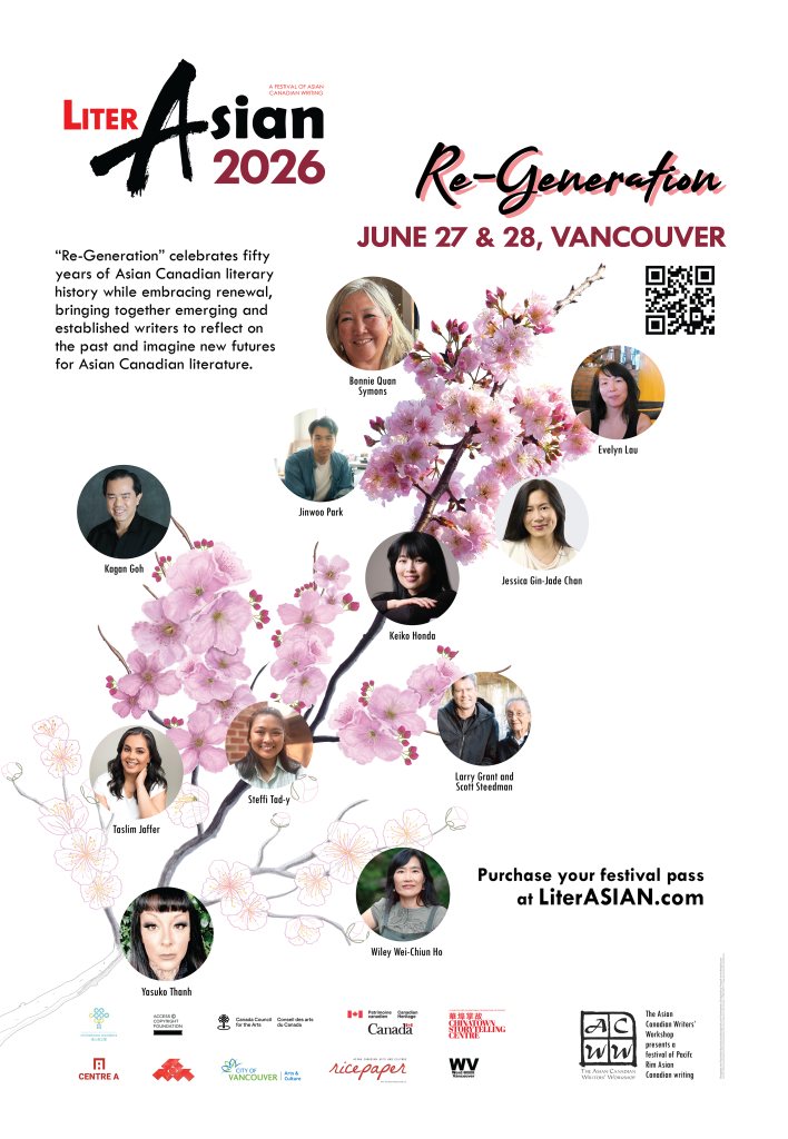 Stay tuned for LiterASIAN 2026 tickets! See below for the schedule. Schedule Saturday, June 27 20261.00pm – 2.00pm: Writing Through Time with Larry Grant and Scott SteedmanModerator: Sarah LingVenue: Chinese Cultural Centre Saturday, June 27 20262.30pm – 3.30pm: Courage to Write, Courage to HealModerator: Tāriq Malik Venue: Chinese Cultural Centre Saturday, June 27 2026 4.00pm –… Continue reading Tickets